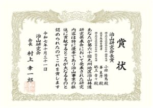 第60回九州地区治山林道研究発表大会おいて治山研究会長賞を受賞しました。